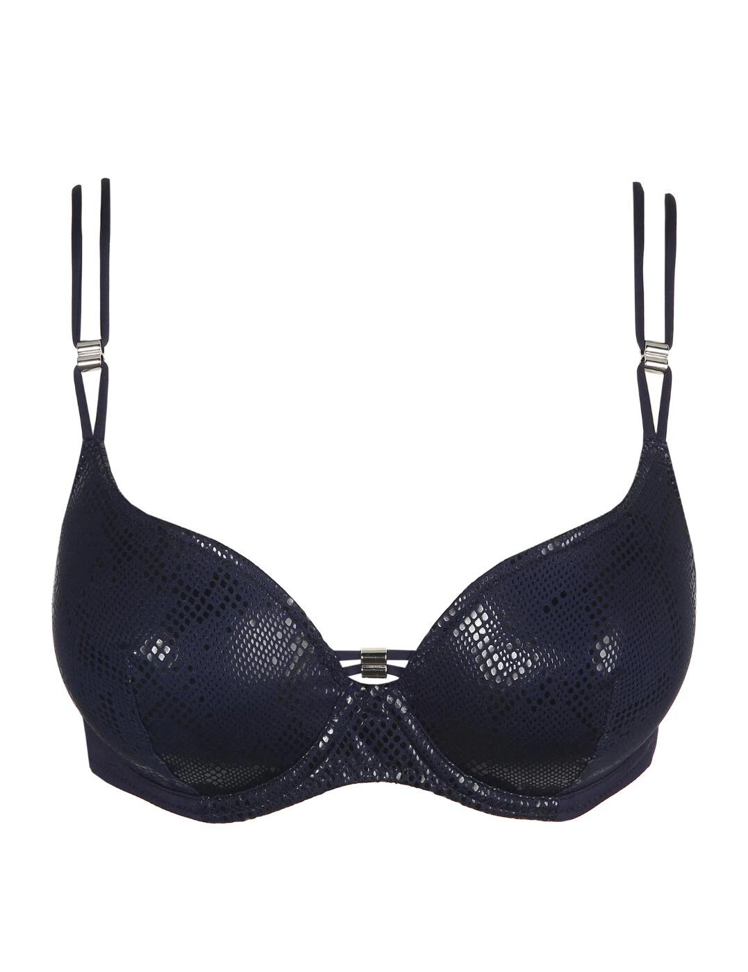 Feel gorgeous in the sea with Marie Jo San Domino padded heart-shaped bikini! This elegant and sexy swimwear offers the perfect combination of femininity, style, and comfort. With its feminine heart-shaped cups, you can count on getting that desired shape without compromising on comfort. The cups boast a playful shimmery snakeskin fabric all over which gives off an undeniably luxurious feel. Additional support comes in the form of padded cups as well as an underwire to keep you looking your best while relaxing on the beach or lounging at the poolside. The adjustable multi-way straps feature a striking silver charm to create a chic statement, you’ll be able to showcase your cleavage in a flattering yet stylish way. To finish off this gorgeous bikini set, matching bikini bottoms are also available so that you can make it an entire look!