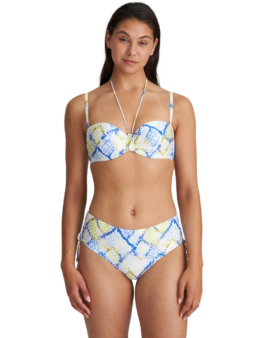 The fashion-forward Lundey collection by Marie Jo ensures you will never compromise on style for comfort. This bikini brief boasts a flattering mid-rise waist and a trendy animal-inspired print. The adjustable ruched allows you to control the rear and leg coverage and adds a stylish feature. Pair with luxurious matching swimwear from the stylish Lundey series by Marie Jo.