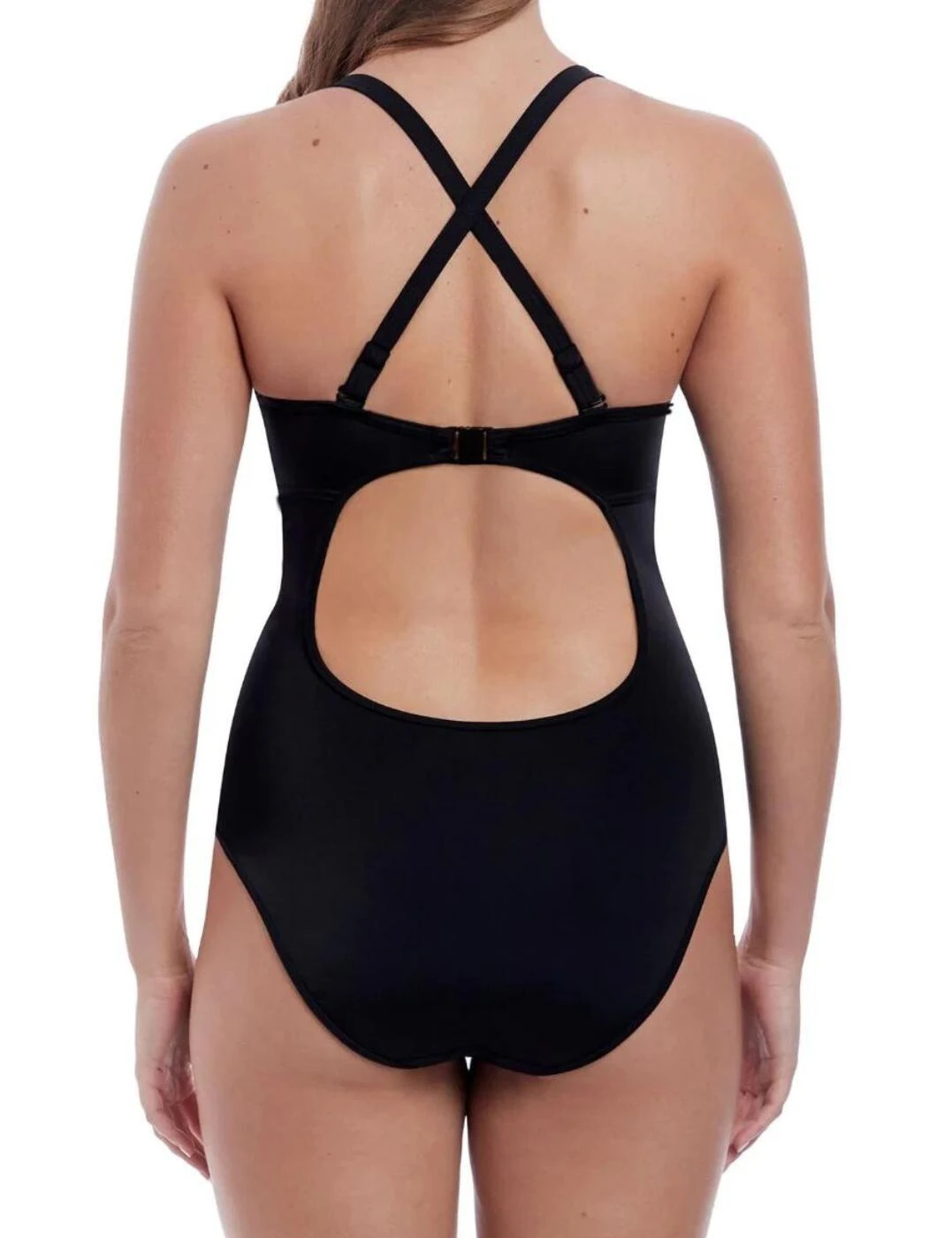 This stylish swimsuit from the Remix range by Freya is a staple in every woman’s swimwear collection. The sexy cutout feature highlights the back and the clasp fastening ensures a secure fit. The convertible shoulder straps allow you to wear the swimsuit in a classic over-the-shoulder look, stylish crossed-back design or flirty halterneck style. Underwiring offers added support and the padded cups create uplift and volume.