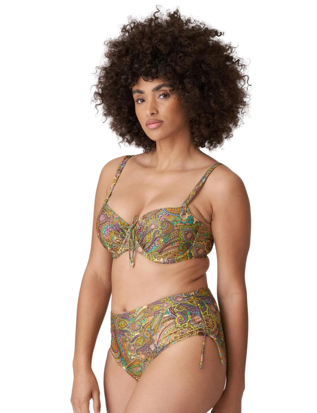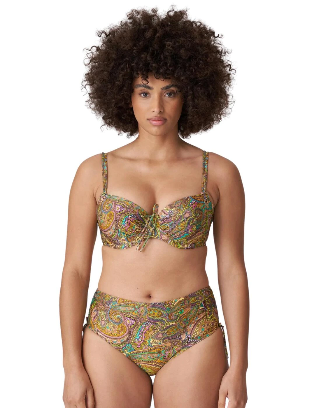 This luxurious full bikini brief by Prima Donna’s Sakarun line would be a perfect addition to your swimwear collection. The classic design has high rise waist and full to moderate coverage for utmost comfort and modesty. This piece has adjustable tie sides so you can adapt it to your desired coverage. This comfortable fit bikini brief has a paisley print pattern finishing off this brief perfectly. To complete this set, snap up the matching available coordinates from Prima Donna’s stylish Sakarun range.