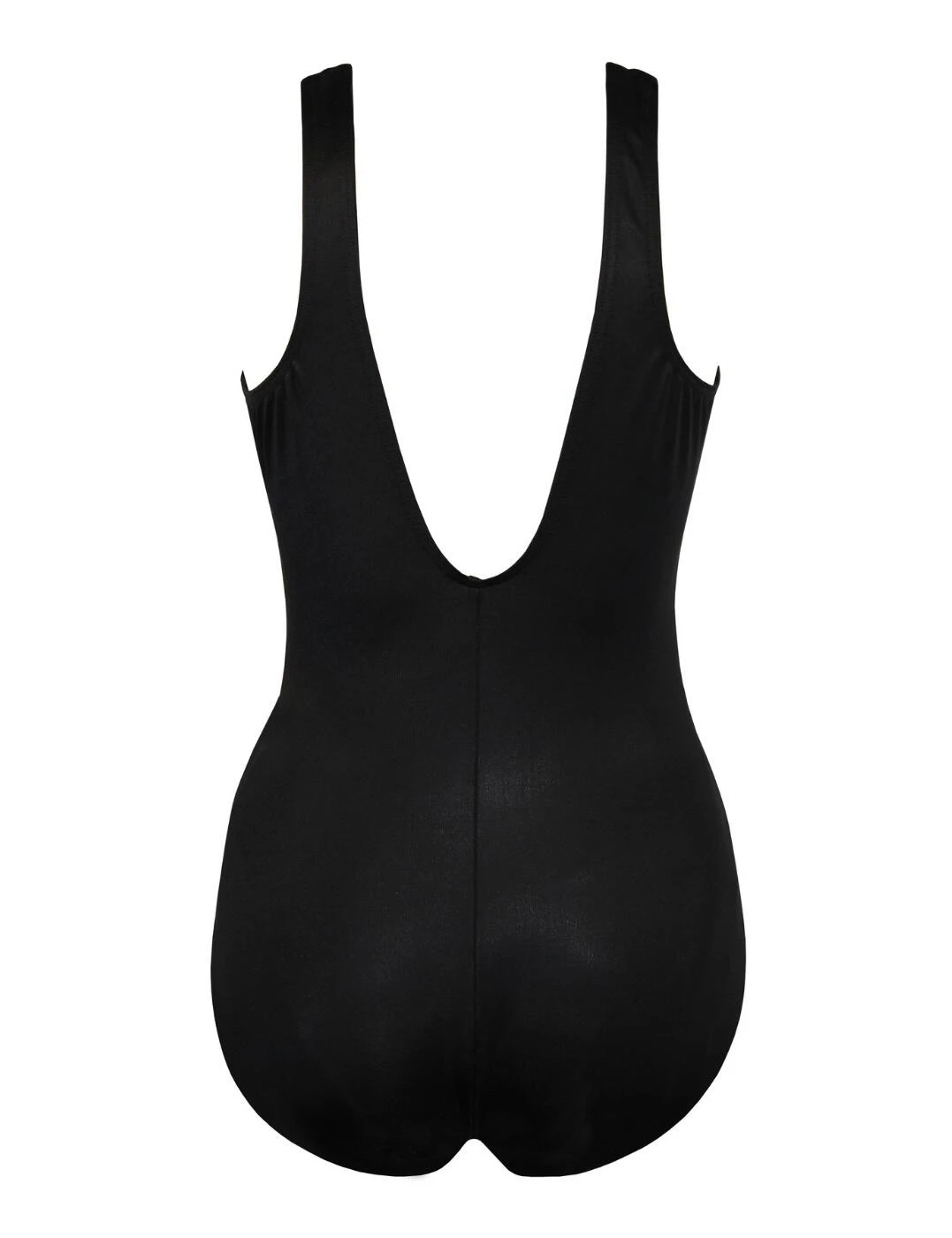 Add a touch of glamour to your swimwear collection with the premium Lux Lynx swimsuit by Miraclesuit. A semi-sheer mesh insert seductively shows a hint of skin and metallic spots shine for a luxurious sexy finish. The wrap design creates a slimming effect by cinching the waist and emphasising an hourglass figure. Miraclesuit’s shape swimwear designs give you the utmost confidence and can make you look up to 10lb lighter in 10 seconds. Soft cups and a moderate rear coverage ensure a comfortable fit that is perfect for all-day wear.