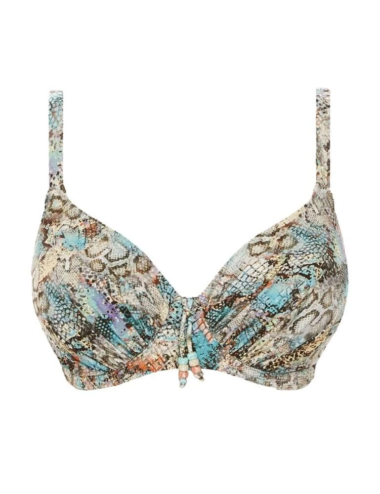 The Manila collection from Fantasie presents a sensational snake print full cup bikini immersed in beachy summery colours. The top offers fuller coverage and great support with a concealed side sling and fully adjustable shoulder straps. Detailing includes gathered cups and a bead trim at the front centre. So on-trend, it’s not to be missed!
