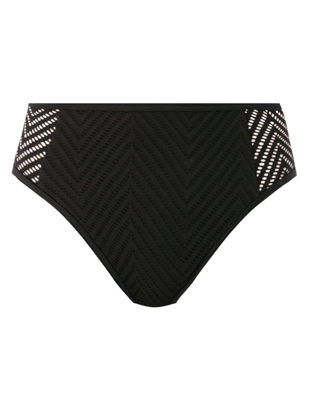The Urban range by Freya is not one to miss out on if your looking for an elegant beach look as it brings classic flattering pieces with a subtle chevron crochet fabric with semi-sheer sections for a flirty feel. This high-waisted bikini brief showcases your figure and curves with its high-rise waist, medium rear coverage and a higher-cut leg that beautifully creates the illusion of elongated legs. The front and rear feature the chevron crochet opaque fabric whilst the sides feature sheer chevron crochet fabric for a jaw-dropping look. Pair with the matching bikini tops which are also available for a fully coordinated look.