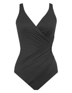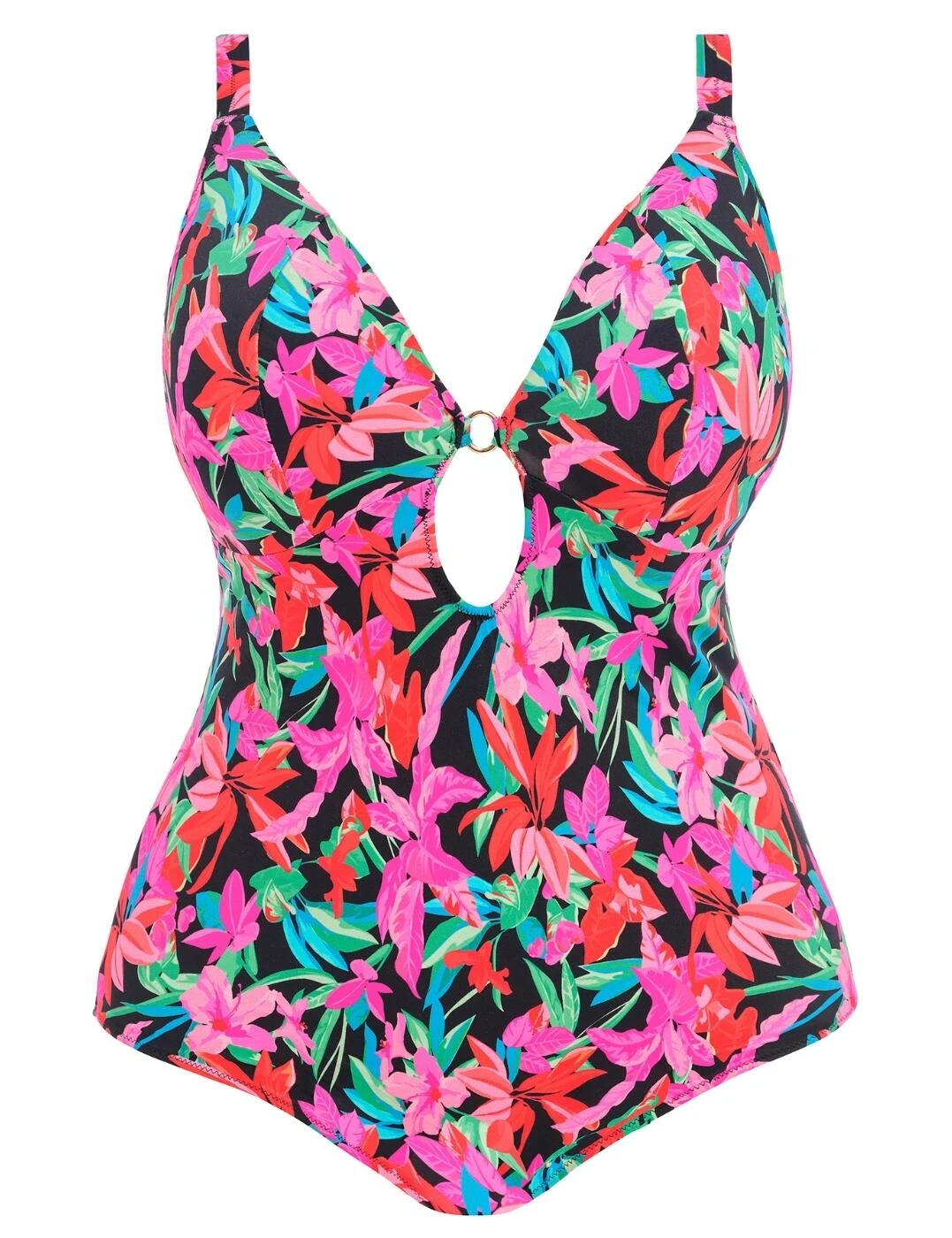 Make a statement with the Elomi Savaneta plunge swimsuit! With a tropical vibrant style, this stylish botanical swimsuit is perfect for every poolside hangout. The deep plunging neckline draws attention and is connected by a dazzling metallic ring at the bust for support. The adjustable shoulder straps provide extra comfort and adjustability, while the non-padded and non-moulded cups give you a natural look. Thanks to its premium quality Lycra Xtra Life fabric, this high-quality plunge swimsuit will give you long-lasting wear. Not only that, but it also features an underwire for added support – giving you the confidence to show off your curves! Plus, it has a secure clip fastening for maximum control and fuss-free use.