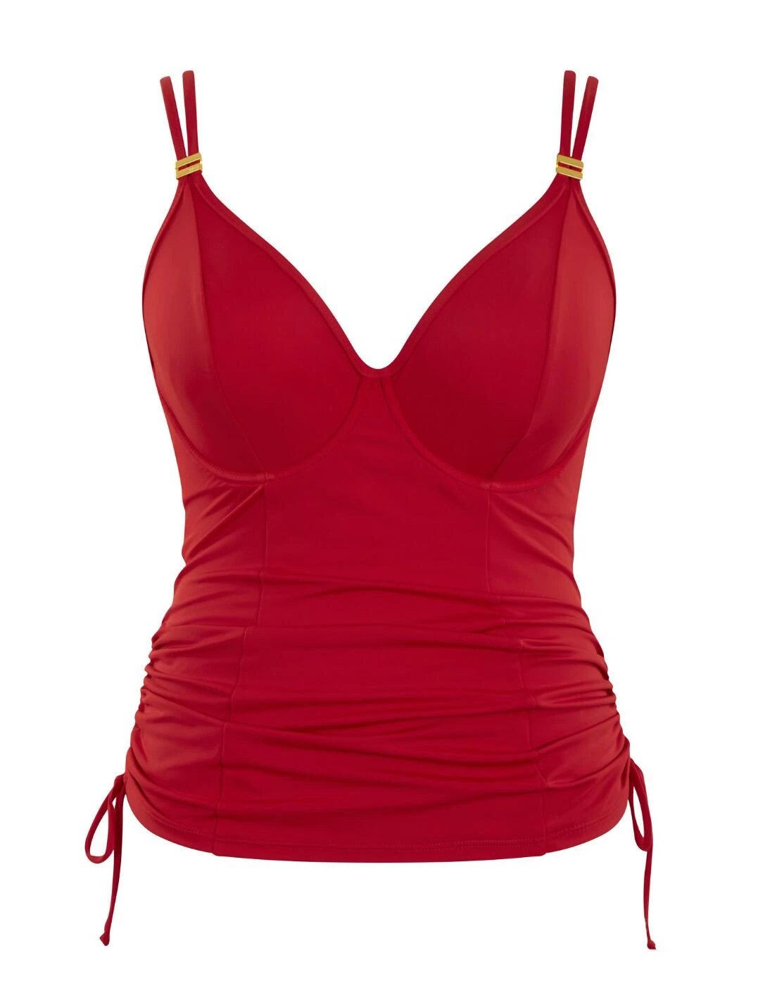 Look effortlessly chic poolside this season with the timeless Anya Riva collection by Panache. The classic tankini top has an adjustable tide side design that creates a flattering ruched effect and allows you to confidently control the length of the top. The balcony style design highlights your alluring cleavage and the underwiring offers added support. Adjustable shoulder straps ensure the perfect fit and the pull-on design allows for easy wear. For a flirty coordinated look, wear with matching swimwear from the gorgeous Anya Riva collection.